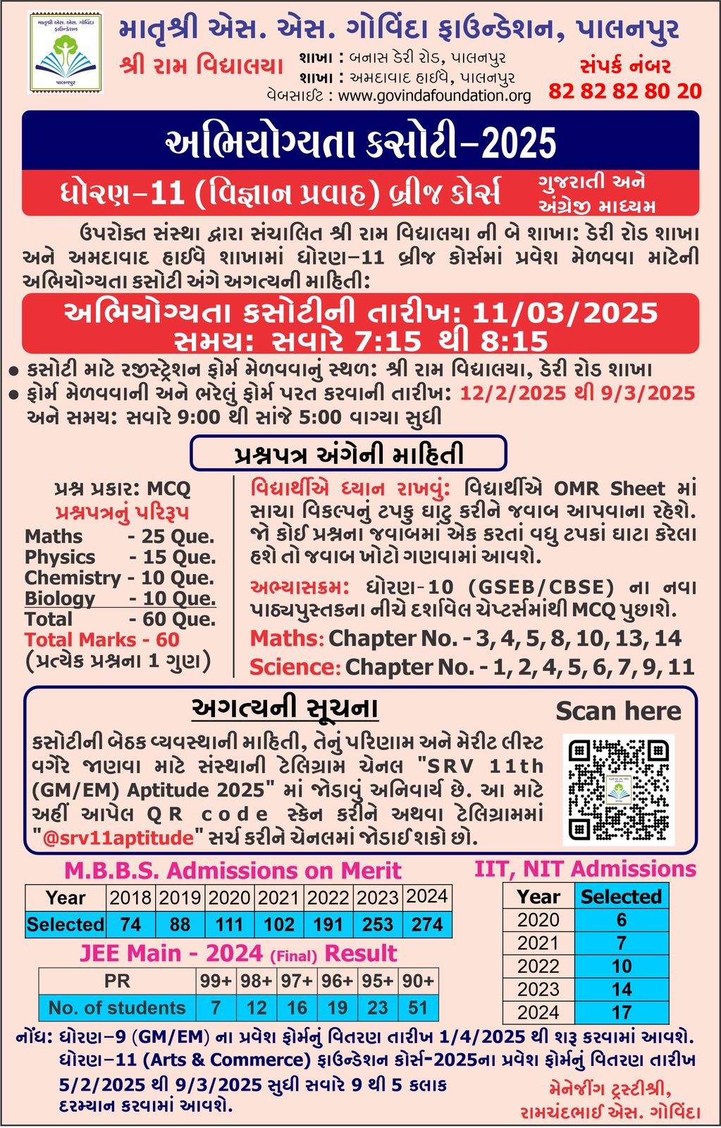 STD : 11 SCIENCE BRIDGE COURCE 2025-26